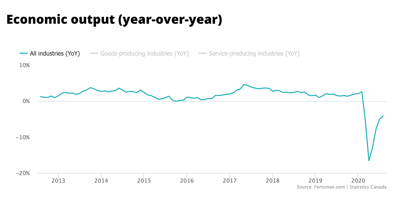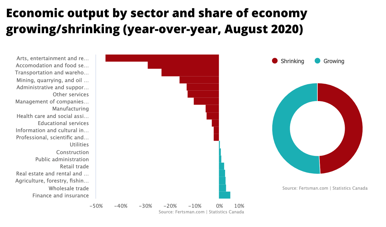 Canada's GDP was down over 4% in August, and 49% of GDP was still shrinking