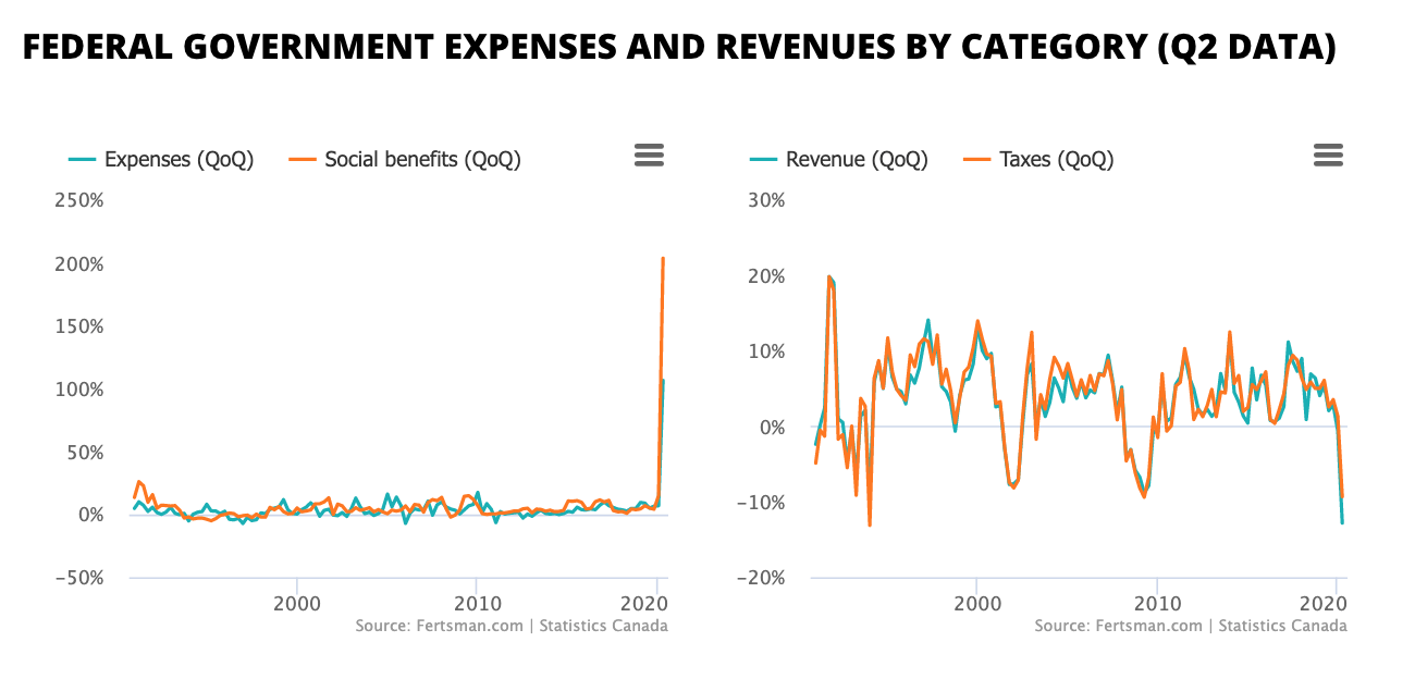 Canadian federal government expenses skyrocket in Q2, revenue falls most in 30 years