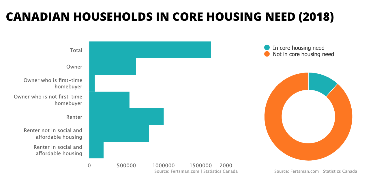 According to the latest numbers released by Statistics Canada and the Canadian Mortgage and Housing Corporation more than 11% of total households in Canada are "in core housing need" - a huge number of families.