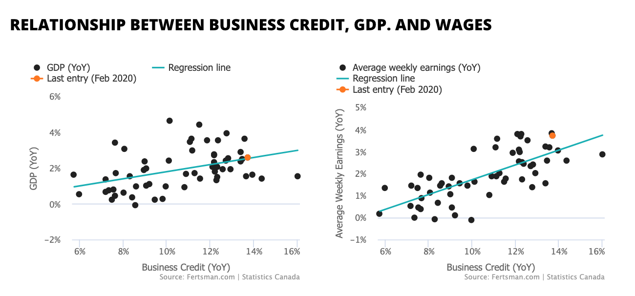 So as you can see, Canada needs to see business credit grow at 15% or more on an annualized basis to see some decent wage and GDP growth.